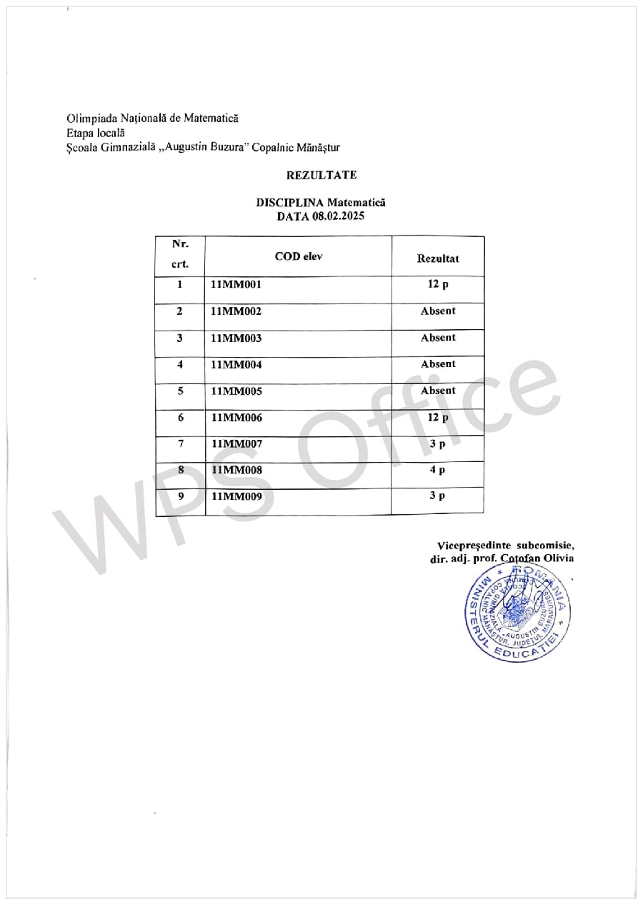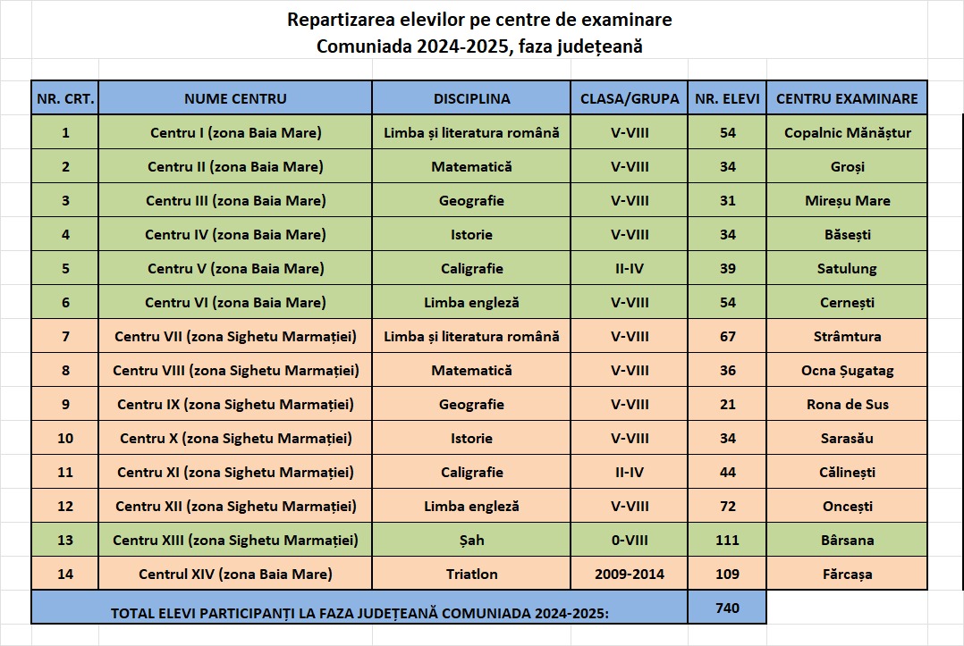 Important! Pentru o cât mai bună desfășurare a concursului, vă rugăm, să ne trimiteți pe adresa de mail scoalacopalnicmanastur@yahoo.com, până la data de 10.02.2024, Tabelul pe unitate de învățământ(cadru didactic însoțitor) și Anexa 10_Acord scris pe adresa mail comuniadamm@yahoo.com.